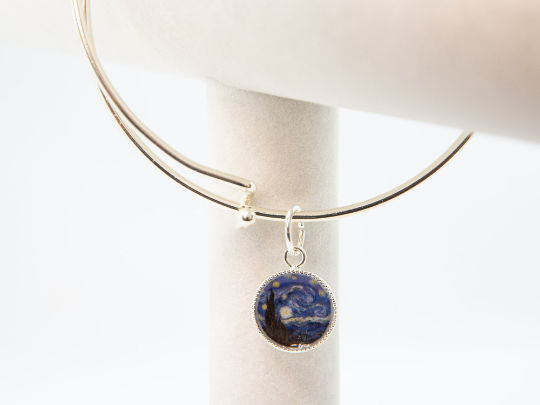 A bangle bracelet with a beautiful image of Starry Night by Vincent van Gogh set with epoxy resin. This bracelet is perfect for an art lover.